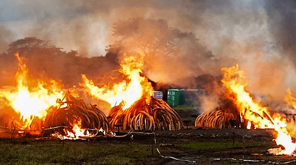 6. Destroying stockpiles – The first ivory destruction event famously took place in Kenya in July 1989, when 12 tonnes went up in flames to draw attention to the CITES ivory trade ban vote coming up in October in Lausanne.