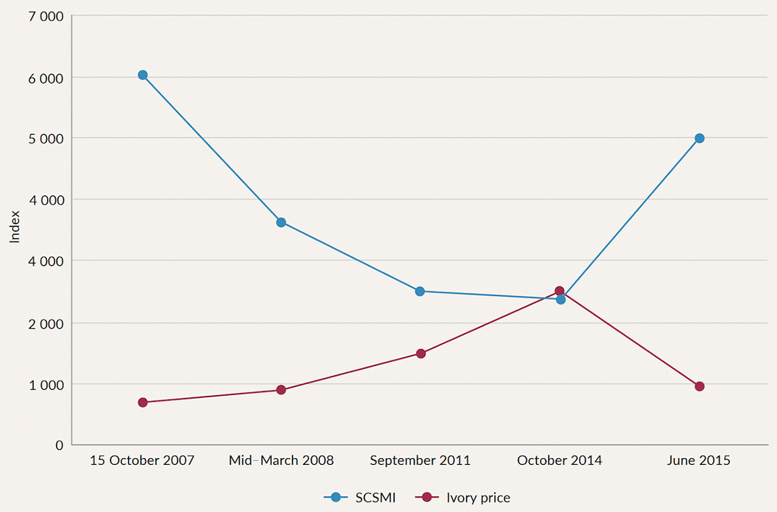 Black-market ivory prices in China then spiked from $560- $ 750 per kilogram in 2006 to $2,100 per kilogram in 2014.