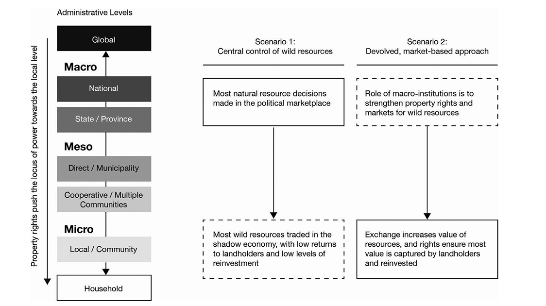 Provided communities owned the wildlife and the land it lived on, and could exclude others from taking it, this would increase incentives to allocate land to wildlife and protect it.