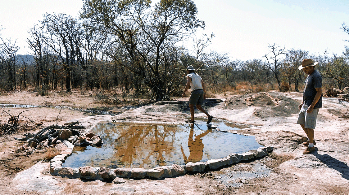 The provision of water was crucial for supporting the growth of wildlife populations. Strategic spots for artificial waterholes were identified across the reserve and are gravity-fed from a central reservoir situated on the hill above a productive borehole.