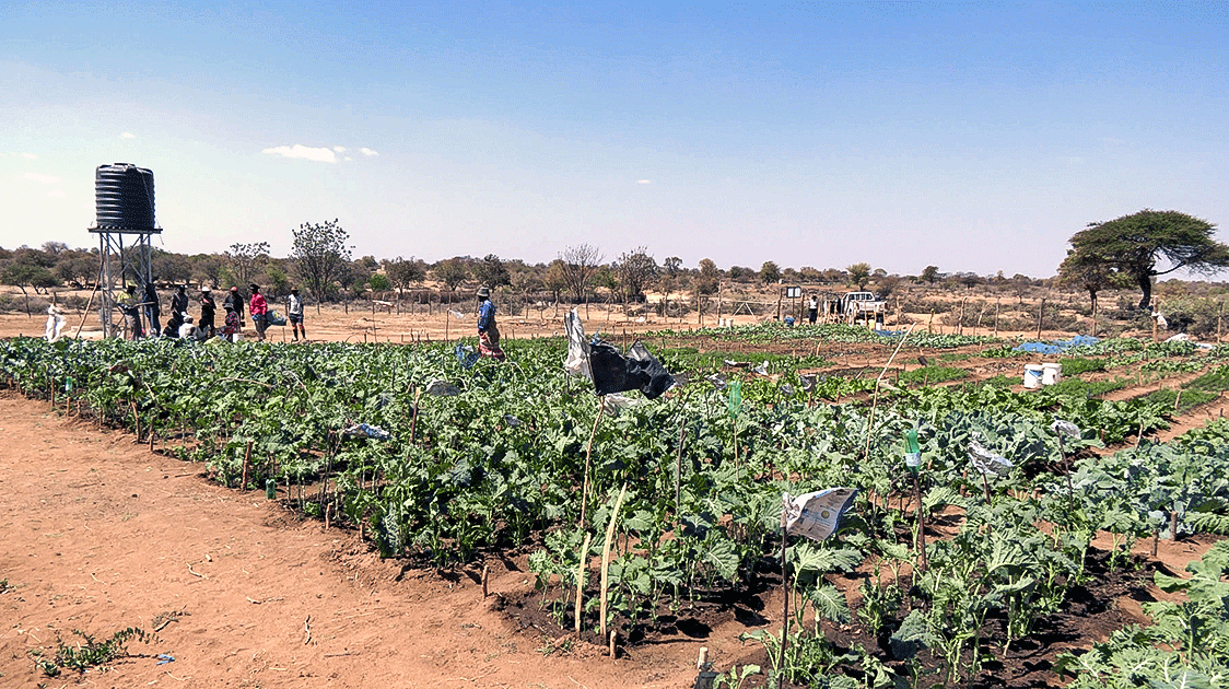 In the past, the community's only access to water was to dig in the river. A community vegetable garden was established when a borehole was sunk, and a solar pump and tank were installed.
