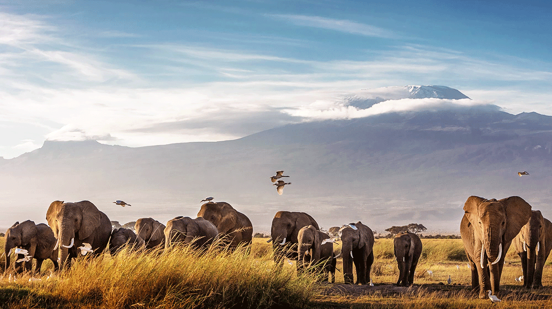 Are super tuskers the main attraction for Amboseli tourists, or do visitors find equal excitement in seeing elephants of any size, with the real highlight being Mount Kilimanjaro rising dramatically from the plains?